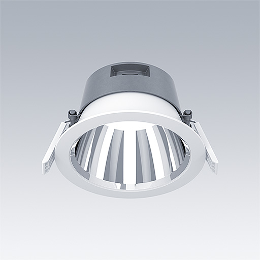 Un downlight LED durable et de haute efficacité avec faible hauteur. Convient pour installation dans les plafonds d’une épaisseur de 1 à 40 mm et une découpe de Ø150 mm avec des attaches à ressort. Driver LED enfichable, à distance, Flux fixe avec fonctionnalité CC, réglable 50 – 100 %, configurable NFC. Câblage à piquage/repiquage possible. Corps : aluminium Moulage sous pression pour une gestion thermique de haute efficacité avec un contenu de recyclage > 90 %. Diffuseur : Polycarbonate (PC). Réflecteur et garniture : Polycarbonate (PC) réflecteur lisse avec une finition brillante pour un meilleure contrôle des éblouissements dans les applications de bureau. Classe électrique II, IP54_IP20. Livré avec LED 3 000 K