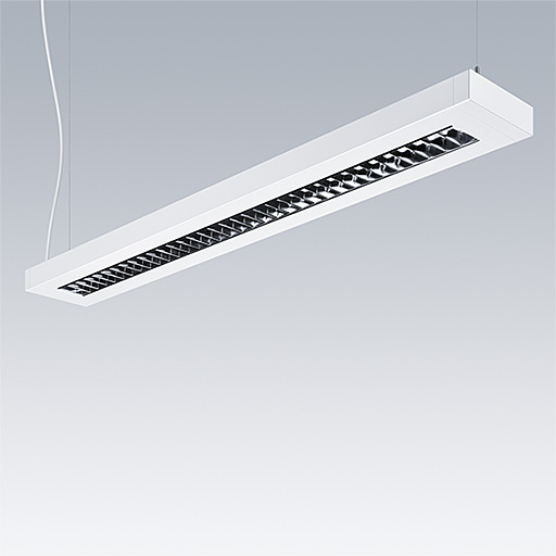 Een slanke LED-armatuur voor gependeld met direct/indirect lichtspreiding. DALI dimbaar Elektronisch. Element: plaatstaal, poedergelakt wit (gelijkend op RAL9016). Montagebeugels: plaatstaal poedergelakt wit (gelijkend op RAL9016). Lamel: glanzend aluminium, (geen). Elektrische klasse I, IP20,schokweerstand: IK03. Elektrische aansluiting d.m.v. voorzien van netsnoer (2.5m). Compleet met 3000K LED. Kit voor pendelmontage apart te bestellen.
