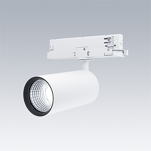LED-schijnwerper voor 3-fase-railsystemen met spotlight-lichtverdeling en gestabiliseerde kleurtemperatuur. elektronisch. niet stuurbaar voorschakelapparatuur.. Elektrisdche klasse II. IP20. Behuizing: aluminium, wit, microstructuurlak. Reflector: gesputterd PC. Spot 360° draaibaar en 90° kantelbaar. Compleet met 4000K LED