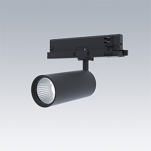 LED-schijnwerper voor 3-fase-railsystemen met spotlight-lichtverdeling en gestabiliseerde kleurtemperatuur. elektronisch. niet stuurbaar voorschakelapparatuur.. Elektrisdche klasse II. IP20. Behuizing: aluminium, zwart, microstructuurlak. Reflector: gesputterd PC. Spot 360° draaibaar en 90° kantelbaar. Compleet met 4000K LED