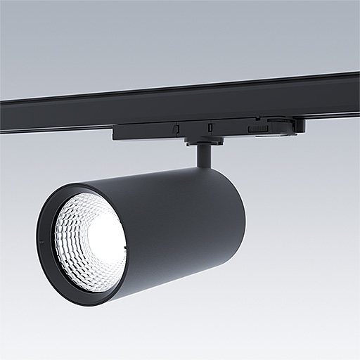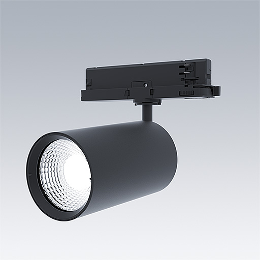 LED-schijnwerper voor 3-fase-railsystemen met spotlight-lichtverdeling en gestabiliseerde kleurtemperatuur. elektronisch. niet stuurbaar voorschakelapparatuur.. Elektrisdche klasse II. IP20. Behuizing: aluminium, zwart, microstructuurlak. Reflector: gesputterd PC. Spot 360° draaibaar en 90° kantelbaar. Compleet met 4000K LED
