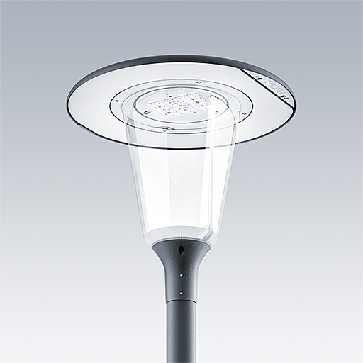 Een onopvallende ledlantaarn voor topmontage met een tijdloos design. LED driver voor 12 leds, met 500mA voeding en Aangename, brede straatverlichting (asymmetrisch) lichtverdeling. elektrische Klasse II, IP66, IK10. Kap en voet: corrosiebestendig drukgegoten poedergelakt aluminium, geschikt voor C5-omgevingen, met getextureerd antraciet (gelijkend op RAL7043) afwerking. Lichtkap: breed uv-bestendig polycarbonaat (PC) met transparant afwerking. Compleet met 4000K LED. Opzetmontage naar Ø60mm kolom. Voorbedraad met 5m kabel. (geen)
