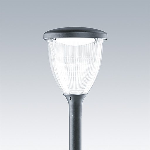 Een slimme ledlantaarn voor paaltopmontage met Brede Straat & Comfort lichtverdeling. Programmeerbaar LED driver met 24 leds, voeding 500mA. elektrische Klasse II, IP66, IK10. Kap en voet: corrosiebestendig drukgegoten poedergelakt aluminium, met getextureerd antraciet (gelijkend op RAL7043) afwerking. Lichtkap: uv-bestendig polycarbonaat (PC). Compleet met 4000K LED. (geen) Voorbedraad met 5m kabel. Opzetmontage naar Ø60mm kolom.