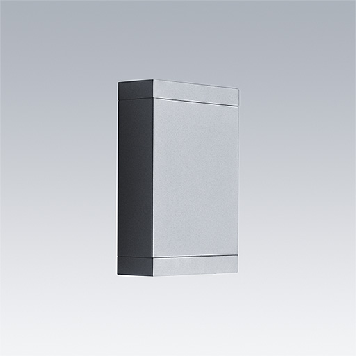 Axyl Glow, wandopbouw, architecturale LED-armatuur voor decoratieve gevelverlichting, 2 ramen met brede lichtbundel; elektrische klasse III. DALI-2 dimbaar, externe LED driver. IP65, schokweerstand: IK06. Behuizing: drukgegoten aluminium, poedergelakt in getextureerd grijs (RAL9006). Bedrijfs-/omgevingstemperatuur: -20°C tot +50°C. Compleet met 2700K LED..