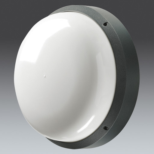 Rond, schokbestendig LED wandarmatuur. niet stuurbaar voorschakelapparatuur Noodverlichtingscircuit, manuele test (3uur). Klasse I elektrisch, IP65, IK10. Behuizing: groot formaat, drukgegoten aluminium (LM6), poedergelakt antraciet. Afdekking: opaal polycarbonaat (PC) met drukgegoten aluminium ring kenmerk. Elektrische verbinding via 4 x 2 x 2.5mm² aansluitdoos. Met geïntegreerde bewegingssensor voor aan/uit bediening. Compleet met 4000K LED