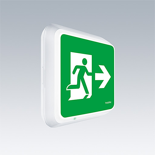 Een slanke, vierkant, opbouw, ledarmatuur voor veiligheidsboden. Armatuur voor centrale voeding van veiligheidsverlichting met individuele armatuurbewaking via DALI (DALI-2-gecertificeerd), instelbaar niveau van veiligheidsverlichting. NFC-interface voor adressering, configuratie en onderhoud via PROset Pen (artikel: 22170290) of PROset app, adressering ook visueel mogelijk of via EZ-adressering. Netvoeding: 220-240 V AC (+/- 10 %), 50/60 Hz; 176-280 V DC. Element: spuitgegoten polycarbonaat (PC), wit (RAL 9016). Diffusor: opaal polycarbonaat (PC), met met gelijmd, afgedrukt nooduitgangspictogram richtingpijl (naar rechts) volgens ISO 7010. Uniforme achtergrondverlichting van pictogram, lichtsterkte > 500 cd/m² in het witte bereik en 200 cd / m² gemiddeld bij netvoeding (volgens DIN 4844), 2 cd/m² minimum bij noodverlichting (volgens EN 1838). Herkenningsafstand volgens EN 1838: 44 m. Elektrische klasse II, IP65, schokweerstand: IK10. omgevingstemperatuur: -30°C tot +35°C. Geschikt voor directe wandmontage. Lus-in/lus-uit is mogelijk voor kabels tot 2,5 mm². Geschikt voor BESA. Geschikt voor voedingsmiddelen (te gebruiken in ruimten met volledig verpakte voedingsmiddelen). Armatuur compleet met halogeen- en silicoonvrije snoeren. Armatuur met D-symbool (voor gebruik in omgevingen waarin de opeenhoping van geleidende stof op de armatuur te verwachten is).